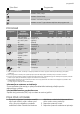 progress 5 5 Tipka Start 6 Programator Indikatori Opis Indikator Faze pranja. Indikator faze sušenja. Indikator završetka programa. Indikator za sol. Taj je indikator isključen dok program radi. PROGRAMI Program 1) 2) 3) Stupanj zaprljanosti Vrsta punjenja Faze programa Trajanje (min) Snaga (kWh) Voda (l) Jako zaprljano Posuđe, pribor za jelo, tave i posude Predpranje Pranje 70 °C Ispiranja Sušenje 130 - 150 1.3 - 1.