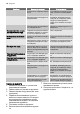 progress Problēma Iespējamais cēlonis Temperatūra telpā ir pārāk augsta. Pa ledusskapja aizmugures sieniņu plūst ūdens. Risinājums Pazeminiet temperatūru telpā. Automātiskās atkausēšanas laikā Tas ir pareizi. izkusušā ledus ūdens plūst pa aizmugures plati. Ūdens ieplūst ledusskapī. Ūdens izplūdes atvere ir nospros- Iztīriet ūdens izplūdes atveri. tota. Produkti traucē ūdens plūsmai ūdens kolektorā. Pārliecinieties, vai produkti neskaras pie aizmugures plates. Ūdens plūst uz grīdas.