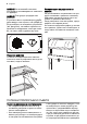 progress 4. Atitirpinę gerai išdžiovinkite vidų. 5. Įjunkite prietaisą. 6. Temperatūros reguliatorių nustatykite į padėtį, kad būtų šaldoma maksimaliai, ir leiskite prietaisui veikti šiuo nustatymu dvi arba tris valandas. 7. Į kamerą sudėkite prieš tai išimtą maistą. Įspėjimas Nenaudokite metalinių įrankių šerkšnui grandyti nuo garintuvo, nes galite jį pažeisti.