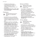 Progress • Pieslēdziet kontaktspraudni kontaktligzdai tikai uzstādīšanas beigās. Pārbaudiet, vai pēc uzstādīšanas kontaktspraudnim var brīvi piekļūt. • Nekad neatslēdziet ierīci no tīkla, velkot aiz barošanas kabeļa. Vienmēr velciet aiz spraudkontakta. Pielietojums BRĪDINĀJUMS! Savainojumu, apdegumu vai elektrošoka risks. • Nemainiet šīs ierīces specifikācijas. • Neievietojiet elektriskās ierīces (piem., saldējuma pagatavošanas ierīci) ierīcē, izņemot, ja ražotājs norādījis, ka to var darīt.