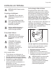 Progress 5 LIETOŠANA Vadības panelis 1 2 Functions 6 1 2 3 4 ON/OFF taustiņš Displejs Temperatūras siltuma taustiņš Temperatūras aukstuma taustiņš Displejs A BC DE F G H 5 4 3 5 OK taustiņš 6 Functions taustiņš A) B) C) D) E) F) G) H) Taimera funkcija Ventilatora funkcija Intensive cooling funkcija DrinksChill funkcija Holiday funkcija ChildLock funkcija Brīdinājuma indikators Temperatūras indikators Ieslēgšana Ierīces izslēgšana Iespraudiet elektropadeves kontaktdakšu elektrotīkla kontak