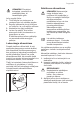 Progress 49 Rozmrażanie zamrażarki UWAGA! Nigdy nie wolno używać ostrych metalowych przedmiotów do usuwania szronu z parownika, ponieważ można go uszkodzić. Nie wolno stosować urządzeń mechanicznych ani żadnych innych metod niezalecanych przez producenta, aby przyśpieszyć rozmrażanie. Wzrost temperatury zamrożonych artykułów spożywczych podczas rozmrażania może spowodować skrócenie czasu ich bezpiecznego przechowywania.
