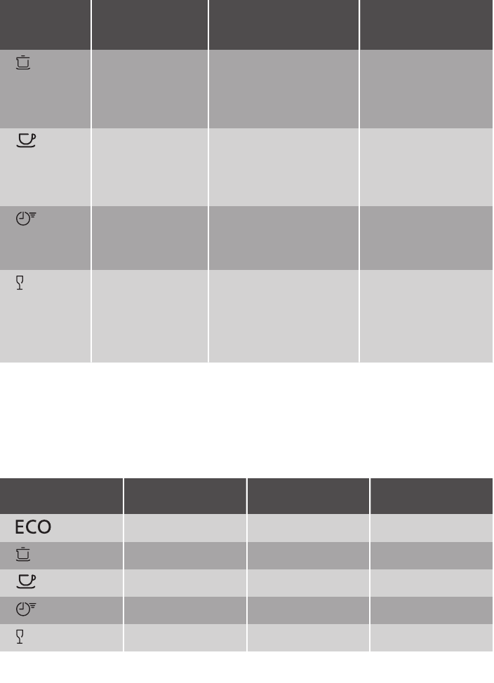 Presiunea şi temperatura apei, variaţiile curentului electric, opţiunile selectate şi cantitatea de vase pot modifi‐