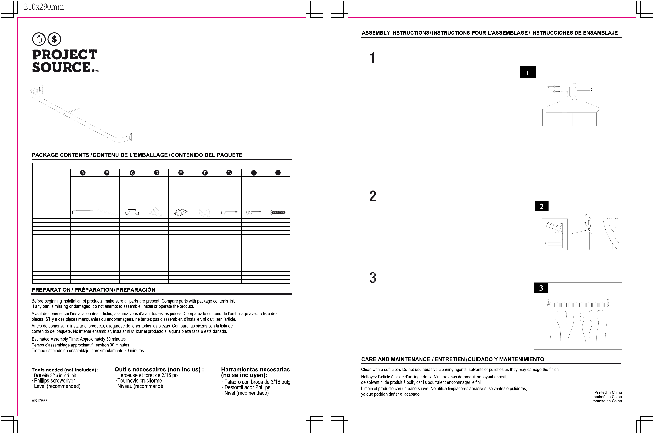 Installing the rod/Installation de la tringle/Instalación de la varilla