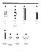 PRÉPARATION Avant de commencer l’assemblage du produit, assurez-vous d’avoir toutes les pièces. Comparez les pièces avec la liste du contenu de l’emballage et celle de la quincaillerie ci-dessus. S’il y a des pièces manquantes ou endommagées, ne tentez pas d’assembler le produit. Communiquez avec le service à la clientèle pour obtenir des pièces de rechange.