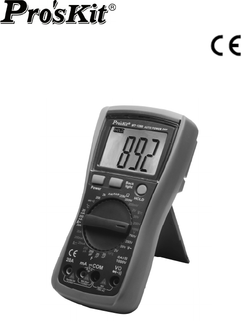 MT-1280 3 1/2 Digital Multimeter User’s Manual 1st Edition, 2013 ©2013 Copyright by Prokit’s Industries Co., Ltd.