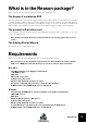 What is in the Reason package? When you purchase Reason, the package contains the following items: The Reason 5 installation DVD This disc contains the main Reason program installer and the Reason Factory Sound Banks, two large files containing samples, patches and loops for use with Reason. These are copied to your hard disk the first time you launch Reason (see “About the Sound Banks” on page 13 for more information).
