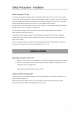 Appendix-SafetyWarnings 1. Do not set up the wall mount by yourself. Please contact qualified professionals 2. The TV should not be mounted on walls or surfaces which have an angle more than 10 degrees with vertical direction. 3. Otherwise The walls for mounting for installtion. the TV set may fall. must have enough strength to hold the whole weight of TV set. For example, concrete wall and brickwork are eligible. Do not place the mount on soft walls such as earth walls and plasterboard. 4.