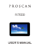 Chapter Five (Specification) Dimension(mm*mm*mm) 191×118×11.5 Weight Approx 300g LCD 7 "800 × 480 OS Android 4.1 Processor RK2926, 1.2G Hz Memory 512MB DDR3 RAM, 4GB internal WI-FI 802.11b/g/n Connections Micro-USB, Micro-SD (up to 32GB), Headphone Jack Battery 3.