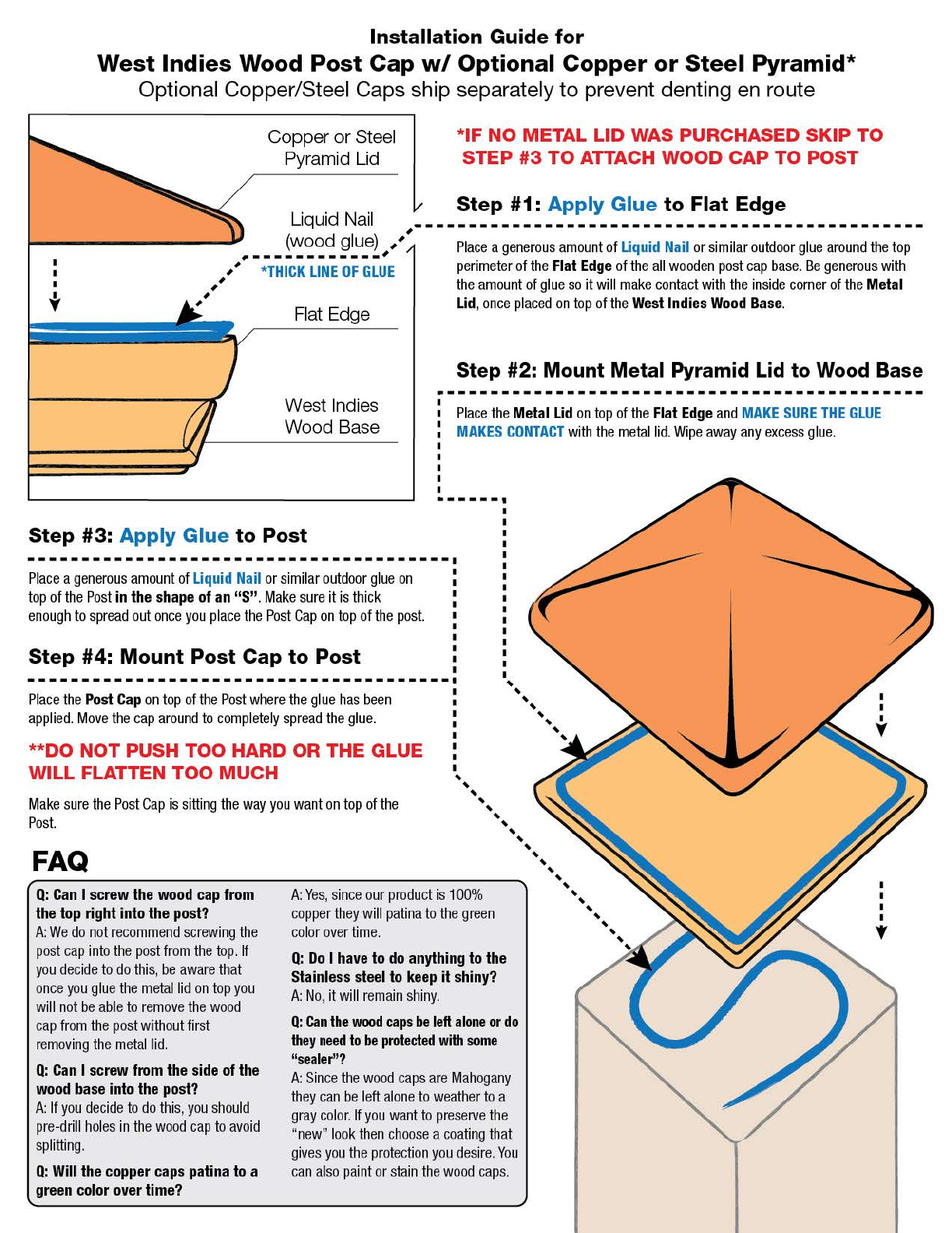 Miterless 4 in. x 6 in. Untreated Wood Flat Slip Over Fence Post Cap with Stainless Steel Pyramid
