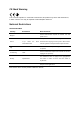 CE Mark Warning This is a class B product. In a domestic environment, this product may cause radio interference, in which case the user may be required to take adequate measures. National Restrictions 2400.0-2483.5 MHz Country Restriction Reason/remark General authorization required for outdoor use and Bulgaria public service France Outdoor use limited to 10 mW Military Radiolocation use. Refarming of the 2.4 GHz e.i.r.p. band has been ongoing in recent years to allow current within 2454-2483.