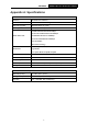 PW-MN561 300Mbps Wireless N Mini PCI Adapter Appendix A: Specifications Normal Interface 32 bit Mini PCI Interface Standards IEEE802.11n; IEEE802.11g; IEEE802.11b; Operating System Windows 2000, XP, Vista Throughput 300Mbps (Maximal) 27/54/81/108/162/216/243/270Mbps 13.5/27/40.5/54/81/108/121.5/135Mbps Radio Data Rate 13/26/39/52/78/104/117/130Mbps 6.5/13/19.5/26/39/52/58.5/65Mbps 1/2/5.