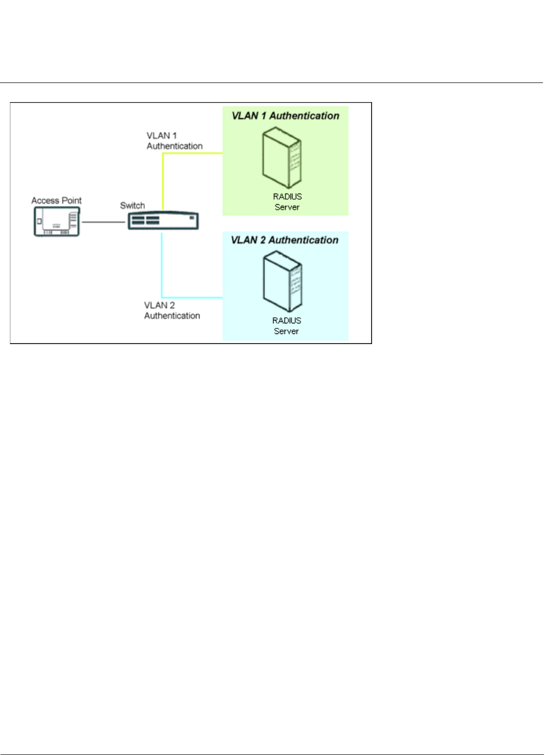 VLAN 2 are authenticated using a different set of authentication servers configured for authenticating users in VLAN 2.