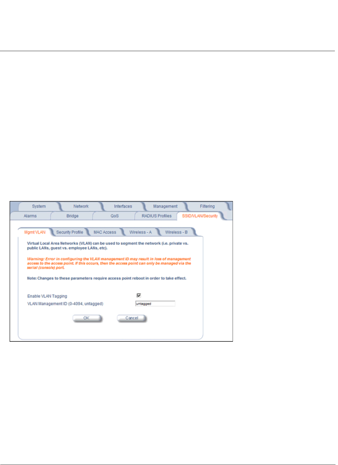 CAUTION: If a non-zero management VLAN ID is configured then management access to the AP is restricted to wired