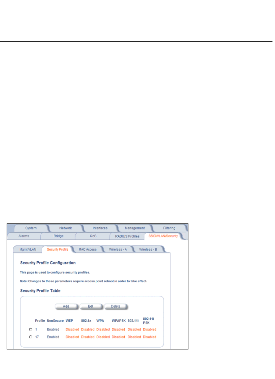 on the AP, the user can configure a security profile for each interface of the AP. When VLANs are enabled and Security