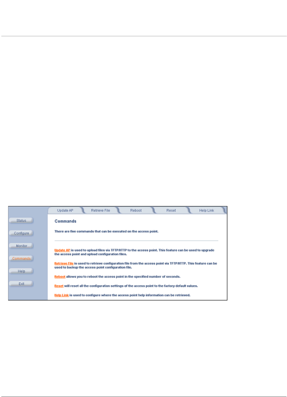 • Reset: Reset all of the Access Point’s configuration settings to factory defaults.