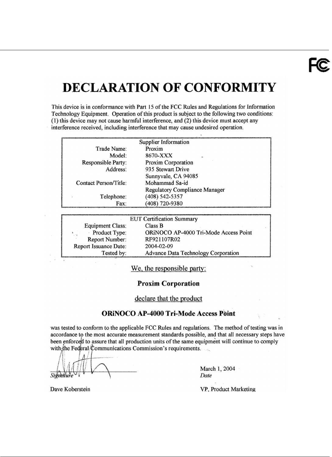 Federal Communications Commission (FCC) (AP-4000/4000M)