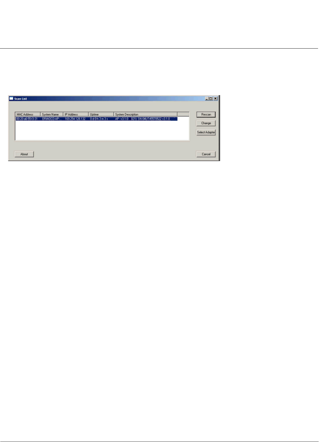 change your adapter setting at any time by clicking the Select Adapter button on the Scan List screen. Note