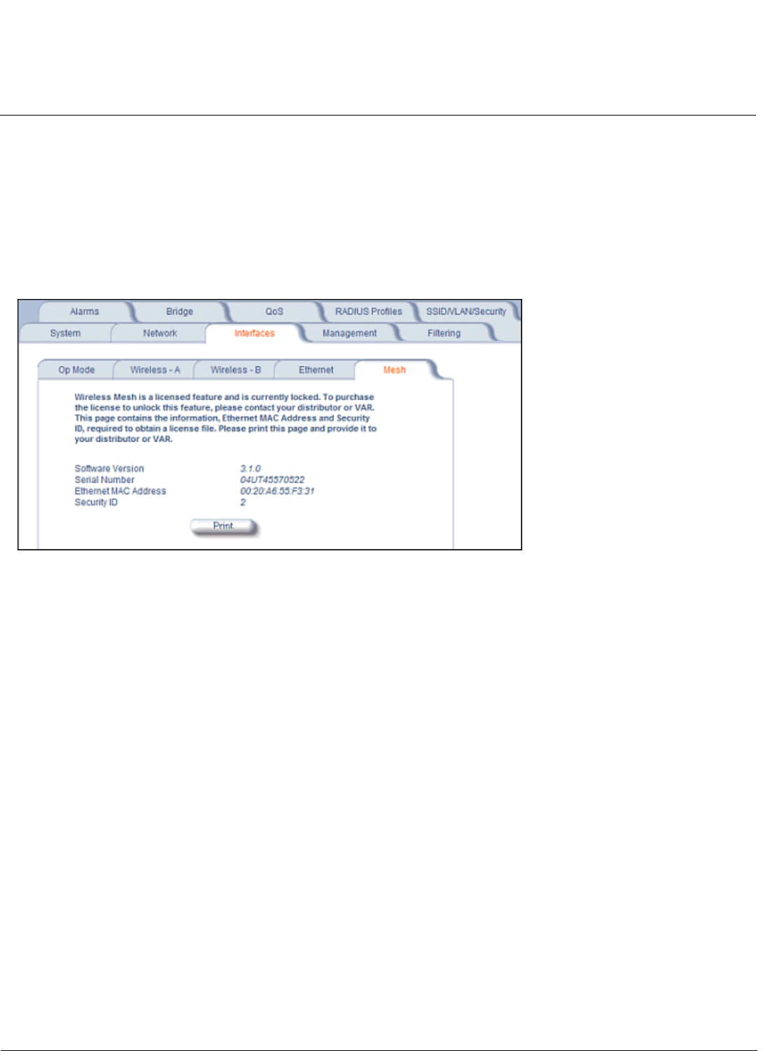 3. Update the AP with the license file included in the Mesh Software Kit. See Update AP via TFTP or Update AP via