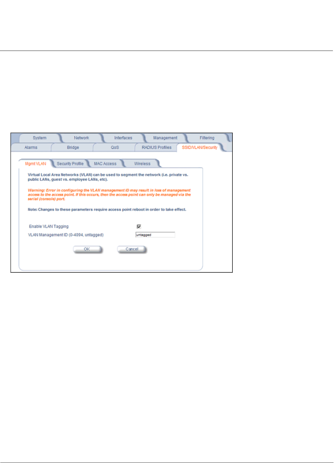 CAUTION: If a non-zero management VLAN ID is configured then management access to the AP is restricted to wired