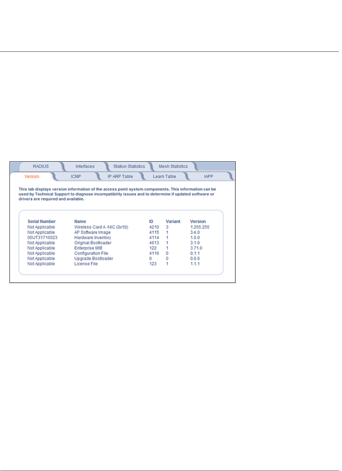 • Version: Specifies the component’s version or build number. The Software Image version is the most useful
