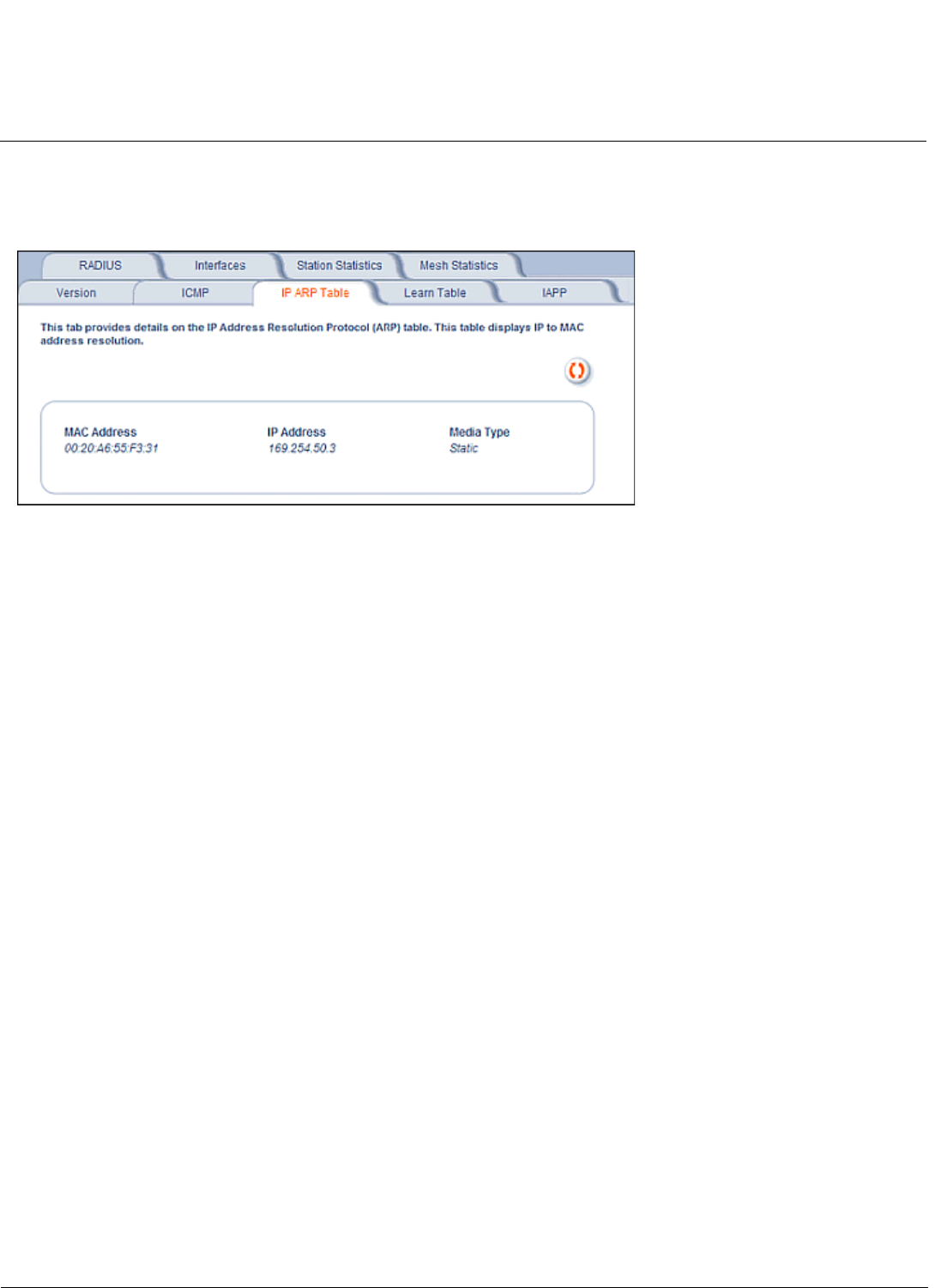 This tab provides information based on the Address Resolution Protocol (ARP), which relates MAC Address and IP