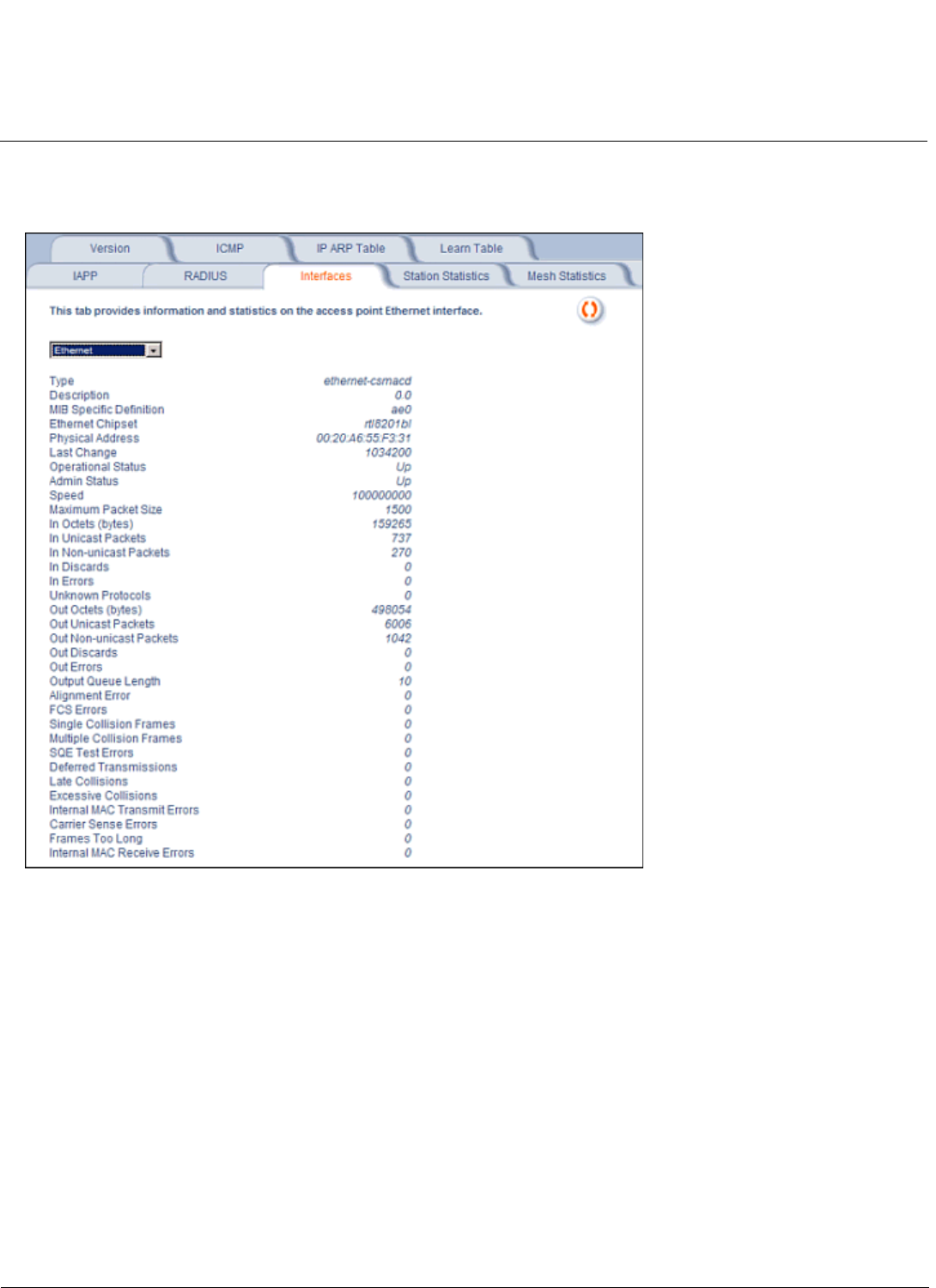 This tab displays statistics for the Ethernet and wireless interfaces.