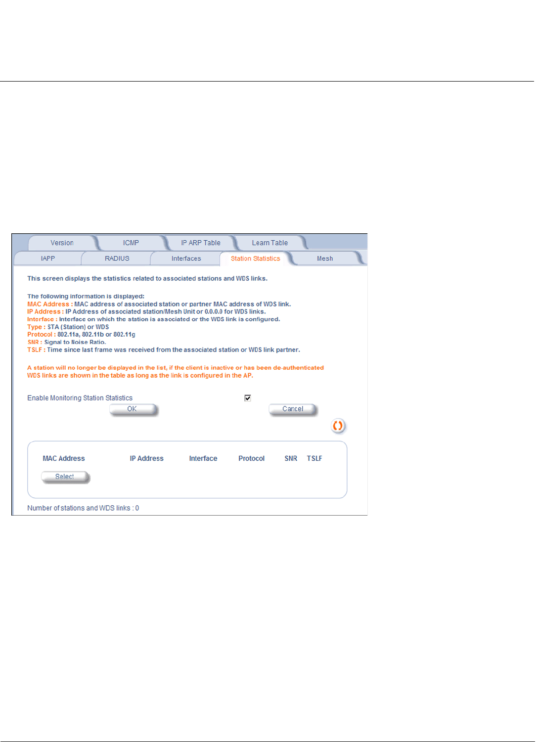 • IP Address: The IP address of the associated wireless station for which the Statistics are gathered. (0.0.0.0 for WDS