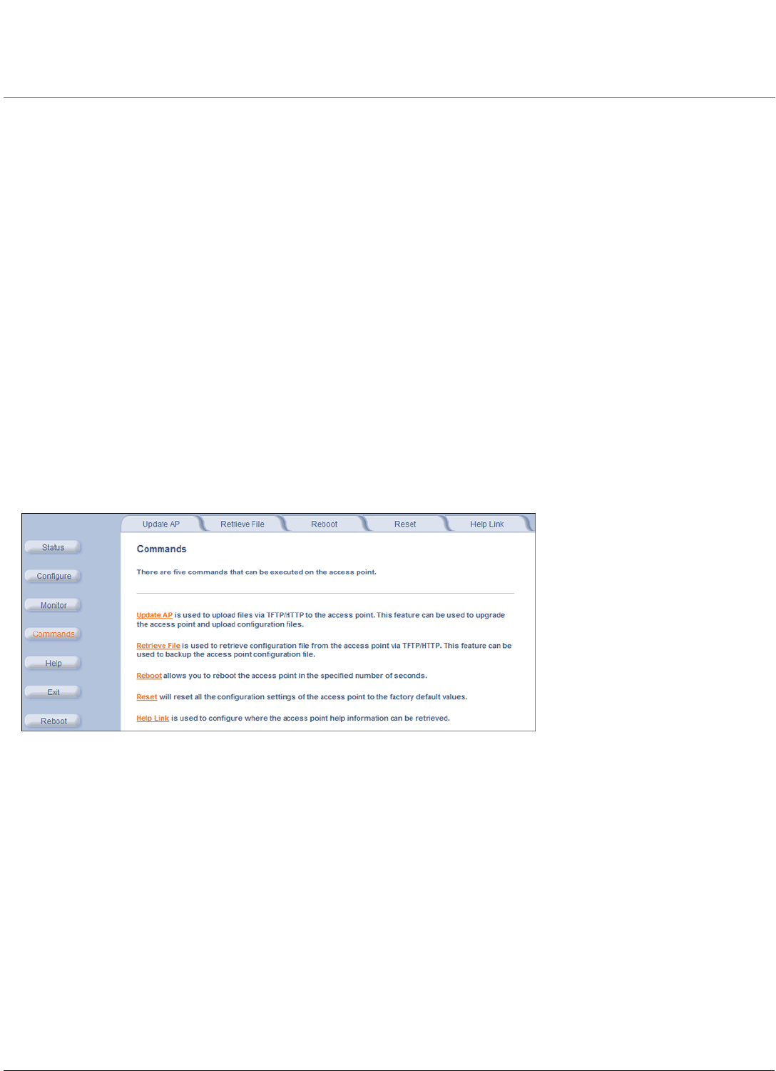 • Update AP: Download files via TFTP or HTTP to the AP.