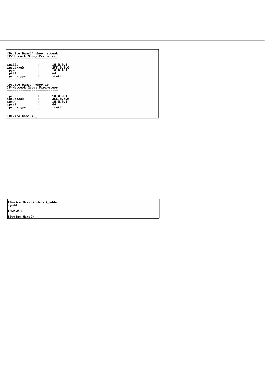 Figure A-10 Results of “show network” and “show ip” CLI Commands