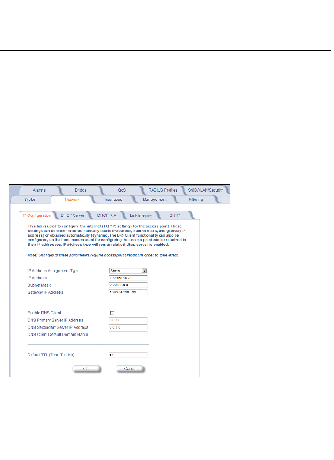 NOTE: You must reboot the AP in order for any changes to the Basic IP or DNS Client parameters to take effect.