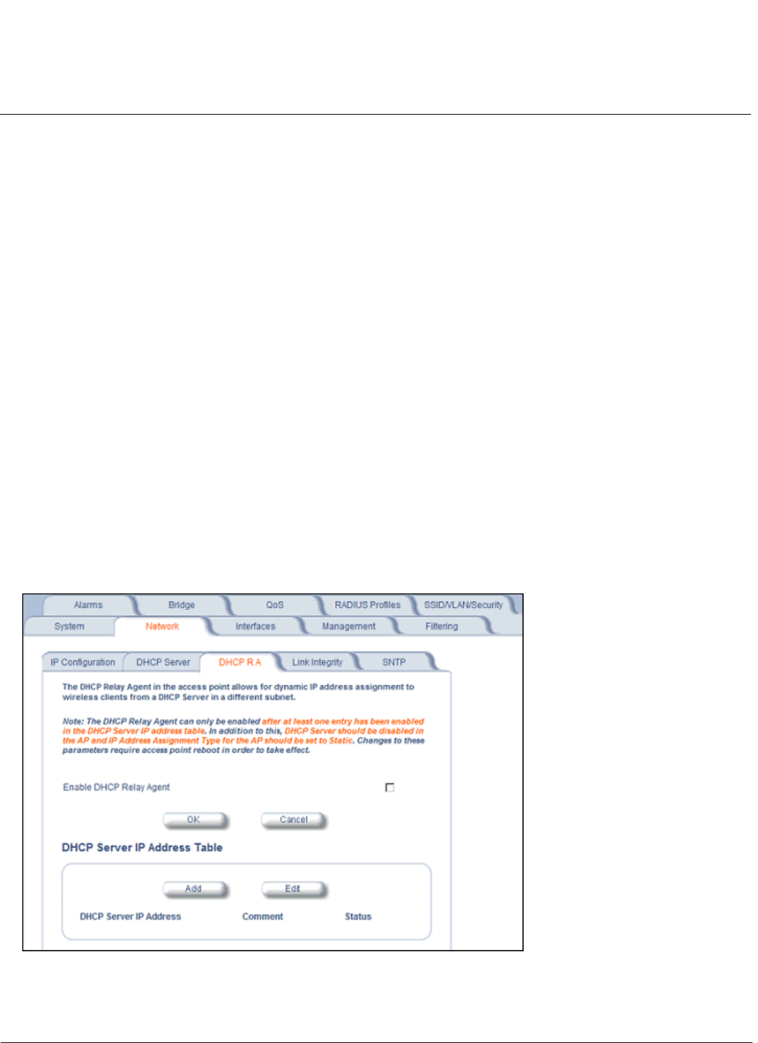 NOTE: At least one DHCP server must be enabled before DHCP Relay Agent can be enabled.