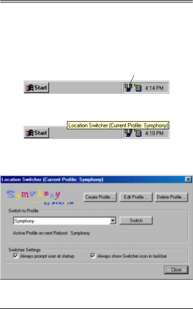the Windows System Tray. If the icon does not appear, the Location Switcher