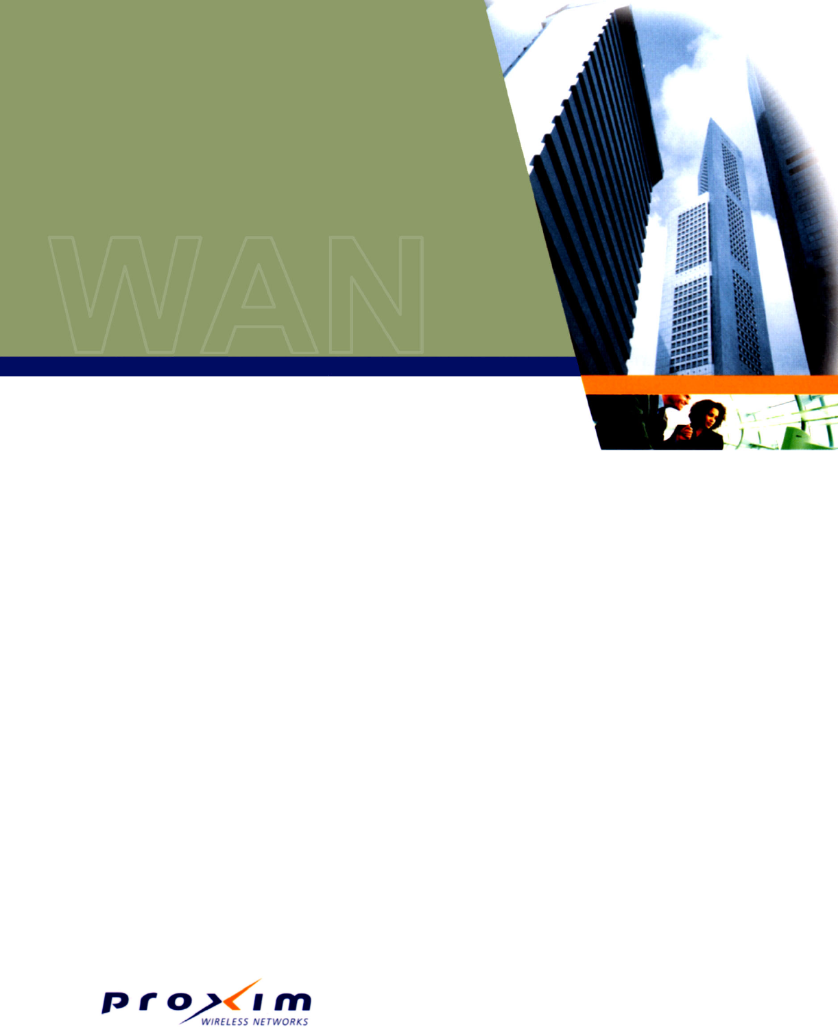 Tsunami MP.11and MP.11a Installation and Management COPYRIGHT ©2003 Proxim Corporation, Sunnyvale, CA. All rights reserved. Covered by one or more of the following U.S. patents: 5,231,634; 5,875,179; 6,006,090; 5,809,060; 6,075,812; 5,077,753. This manual and the software described herein are copyrighted with all rights reserved.