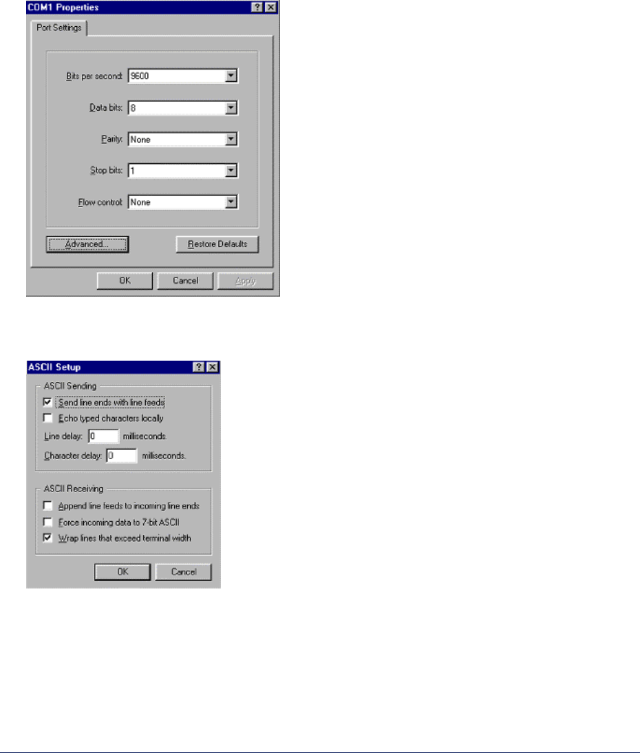 4. Click the Settings tab and then ASCII Setup…. A window similar to the following is displayed: