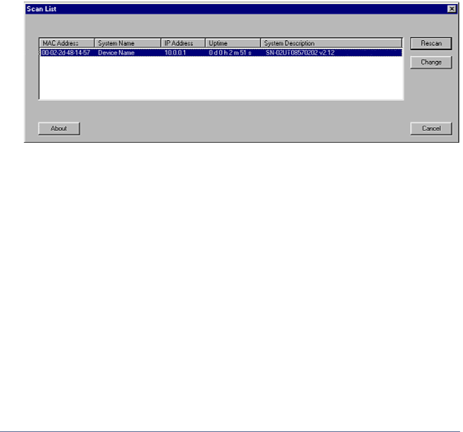 ScanTool scans the subnet for MP.11/a units and displays the units it finds in the main window. The