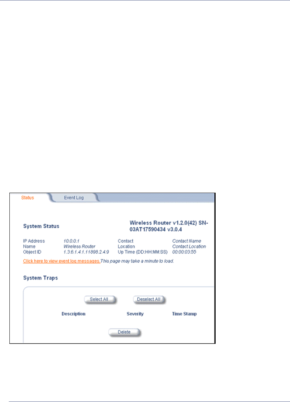 The Status tab showing System Status is displayed automatically when you log into the Web Interface.
