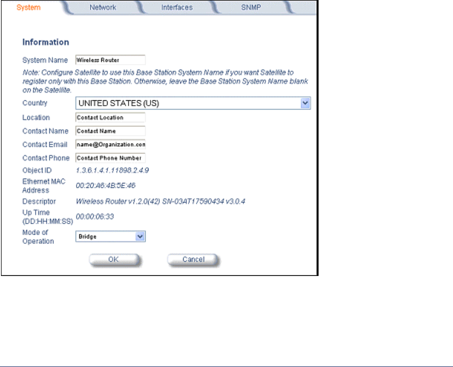 The System Configuration page lets you change the MP.11/a’s System Name, Location, and so on.