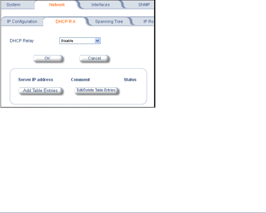 relay agent. When enabled, the DHCP relay agent forwards DHCP requests to the set DHCP server.