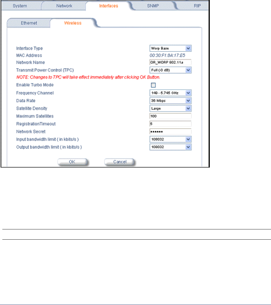 The interface type can be Worp Satellite or Worp Base. *See “Wireless Outdoor Router Protocol”