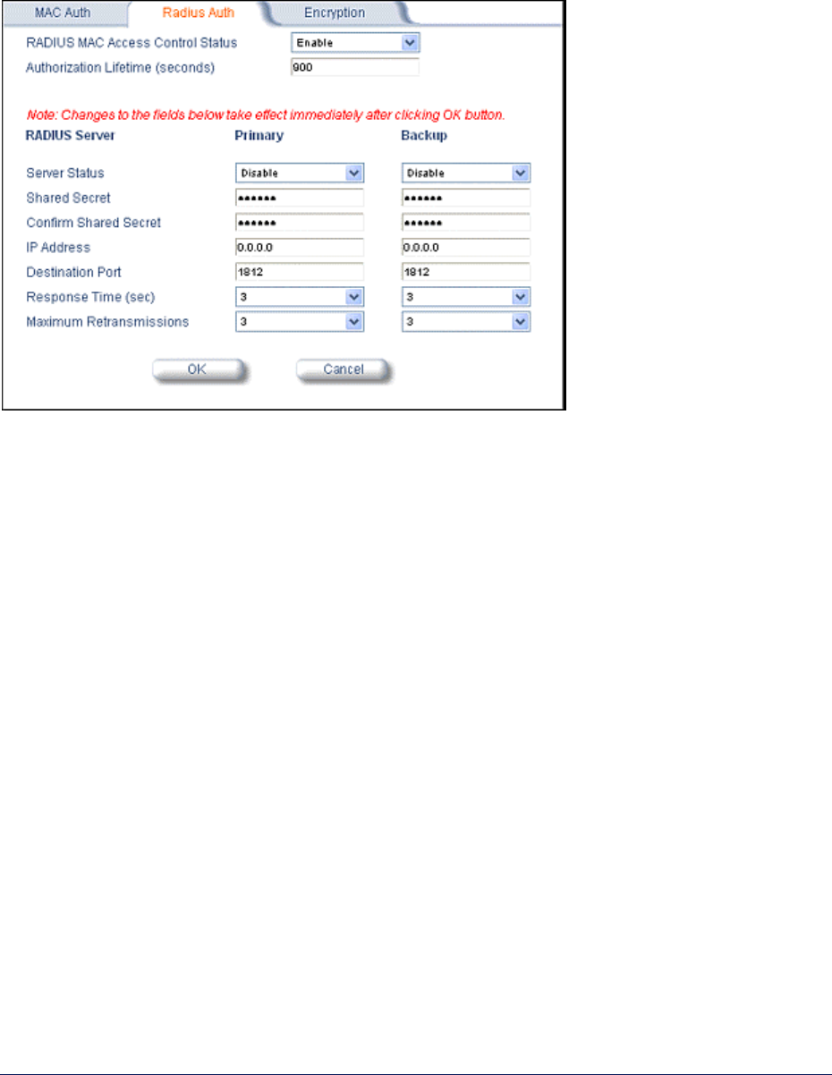 kind of authentication, you must specify at least the primary RADIUS server. The backup RADIUS