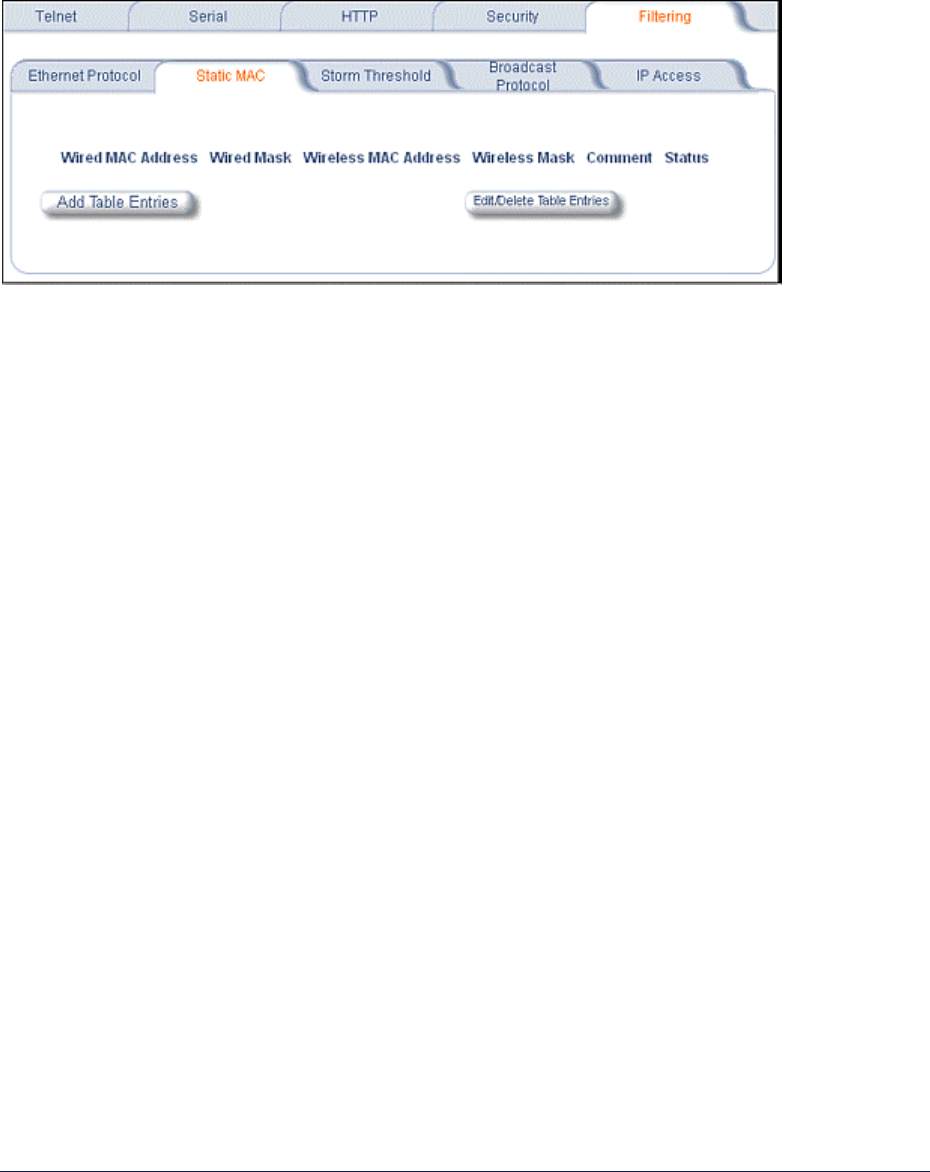 The Static MAC Address Filter optimizes the performance of a wireless (and wired) network. Click the