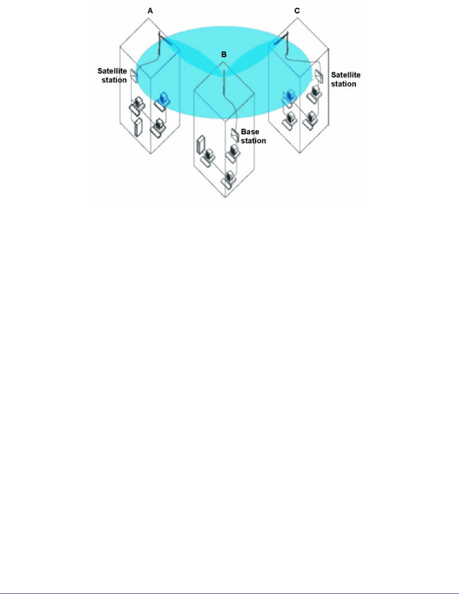 ▪ The central building B is equipped with a Base interface, connected to either an omni-directional, or