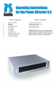 Table of Contents 1. 2. 2. 3. 4. 5. 5. 5. 6. 7. 8. What’s in the Box Warning Overview Quick Start Guide Rear Panel Front Panel DC trigger Logo trim tool Troubleshooting Guide Warranty and Service Contact Information What’s in the Box • One Power Director 3.5 • One 6 foot AC power cord • One logo trim tool • One user’s manual • One warranty card IMPORTANT: Be sure to save all packing materials included with your Power Director 3.