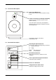 3.2 Front Panel Description Power ON LED (Green) Mains power is present and the speaker is ready to use. Limiter or Overheat or Standby LED (Red) Flashing of the led indicates that the internal limiter is working. If the LED works continuously, the amplifier is operating under overheated conditions and turns into standby mode. Anti-slippage stickers to be placed underneath the unit. 3.