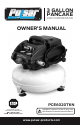 Owner’s Manual Compressor Specifications Model Number PCE6031PK Horse Power 1/3 Tank Capacity Gallons/Liters 3 Gallon Voltage/Amps/Phase 120/2.6/1 Kick-In Pressure 70 Kick-Out Pressure 100 WARNING! The power cord on this product contains lead, a chemical, known to the state of California to cause cancer and birth defects or other reproductive harm. Wash hands after handling Precautions • Drain the moisture from the tank daily to help prevent corrosion.