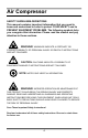 Air Compressor Table of Contents Page Topic Safety Guidelines-Definitions 4 Hazard Warnings 5 Air Compressor 15 Precautions 15 Basic Air Compressor Components 16 Assembling the Air Compressor 16 Compressor Controls 18 Electrical Power Requirements 19 Breaking In The Pump 21 Operating Instructions 21 Maintenance 23 Storage 24 Service 24 Troubleshooting 25 Glossary Terms 29 Limited Warranty 31 2