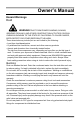 Owner’s Manual Hazard Warnings Dust WARNING! DUST FROM POWER SANDING, SAWING, GRINDING, DRILLING, AND OTHER CONSTRUCTION ACTIVITIES CONTAIN CHEMICALS KNOWN TO THE STATE OF CALIFORNIA TO CAUSE CANCER, BIRTH DEFECTS OR OTHER REPRODUCTIVE HARM.