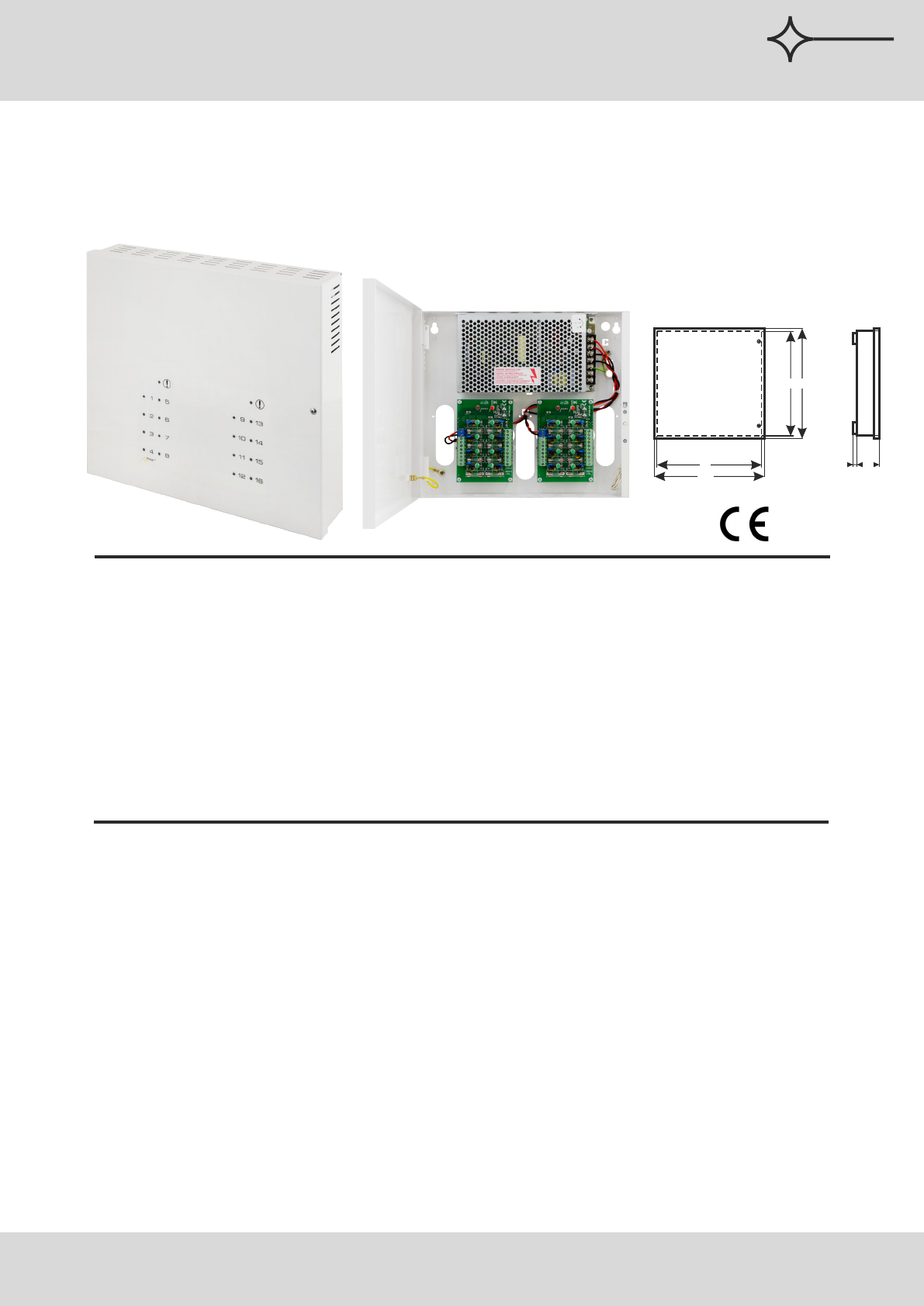 range of 12V÷15V DC. The PSU features 16 outputs protected independently by either glass fuses or