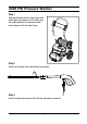 2000 PSI Pressure Washer - Connect the high pressure hose to the high pressure outlet fitting. - Open the water supply valve completely. Before turning the unit on, press the gun trigger to bleed all the remaining air out of the pump and hose. Start the pressure washer by turning the on/off switch to the on position and squeeze the trigger. REMIN DER: T h e motor does n ot run continu ously, only wh en t h e trig ge r is squ e e z ed.